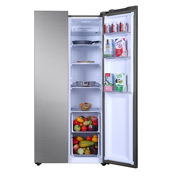 Aqua Inverter AQR-S480XA(SG) thuộc dòng tủ lạnh Side by Side với 2 cánh mở 2 bên cực kì tiện lợi, hai ngăn đông và ngăn mát được bố trí song song theo chiều dọc, bạn sẽ dễ dàng sắp xếp thực phẩm yêu thích trong tầm mắt, thuận tiện cho việc lấy ra mà không cần cúi xuống tìm kiếm. Tủ có chiều cao và chiều sâu hợp lý phù hợp với vóc dáng người Việt, giúp người dùng có thể lấy thực phẩm ở mọi vị trí, tránh bỏ quên thực phẩm nằm bên trong dẫn đến hư hỏng, lãng phí. Cánh cửa tủ thông minh khi có thể mở rộng và cố định ở góc 90 độ, giúp bạn dễ dàng lấy và cho vào thực phẩm dễ dàng hơn.